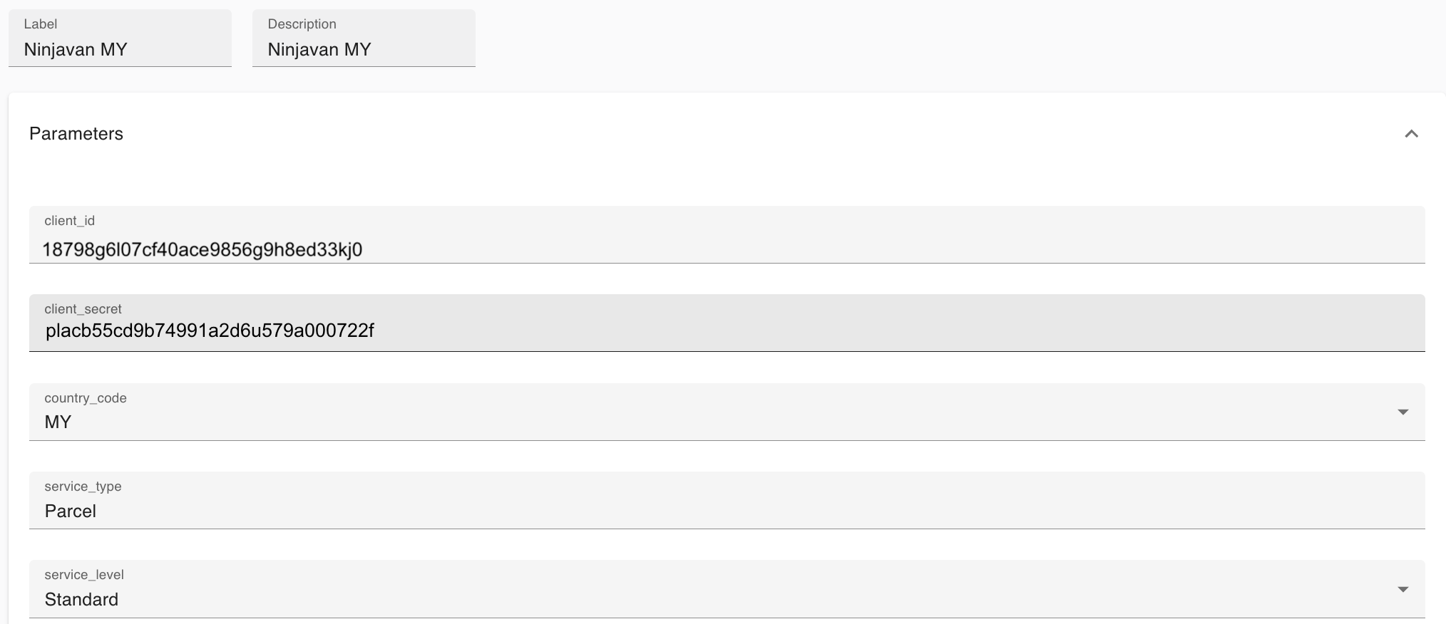 Service_level: Select the package level your company uses with Ninja Van. Eg. Standard, Express, Sameday or Nextday.