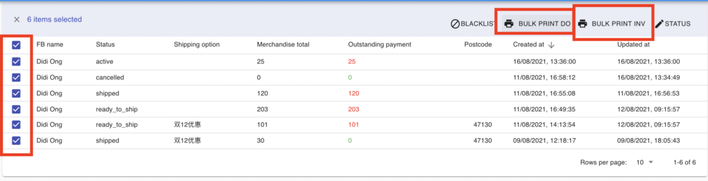 You can print multiple delivery orders (DO) or invoices in one go — no need to open each order separately.