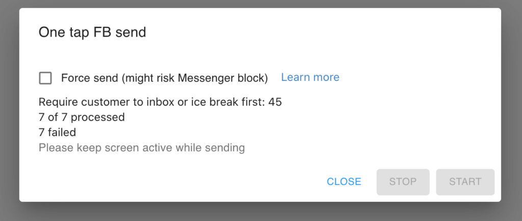 Facebook restricts businesses from sending messages to customers outside a 24-hour window from the customer’s last interaction. This can make it difficult to follow up with customers about unpaid orders. Boxify’s Mass FB Send button helps you manage this within Facebook’s rules.