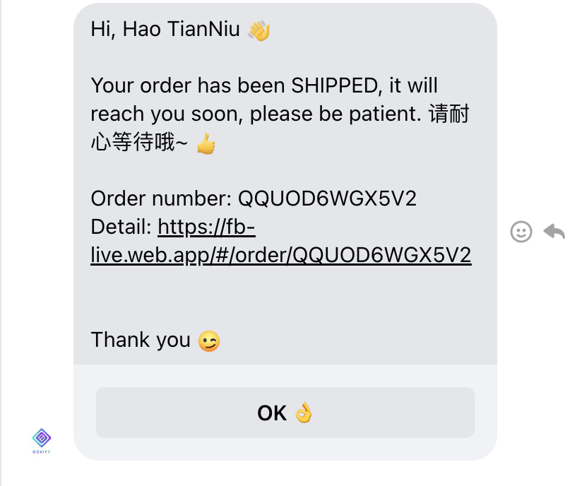 The system automatically sends a notification to the customer when the status changes to Ready to Ship.