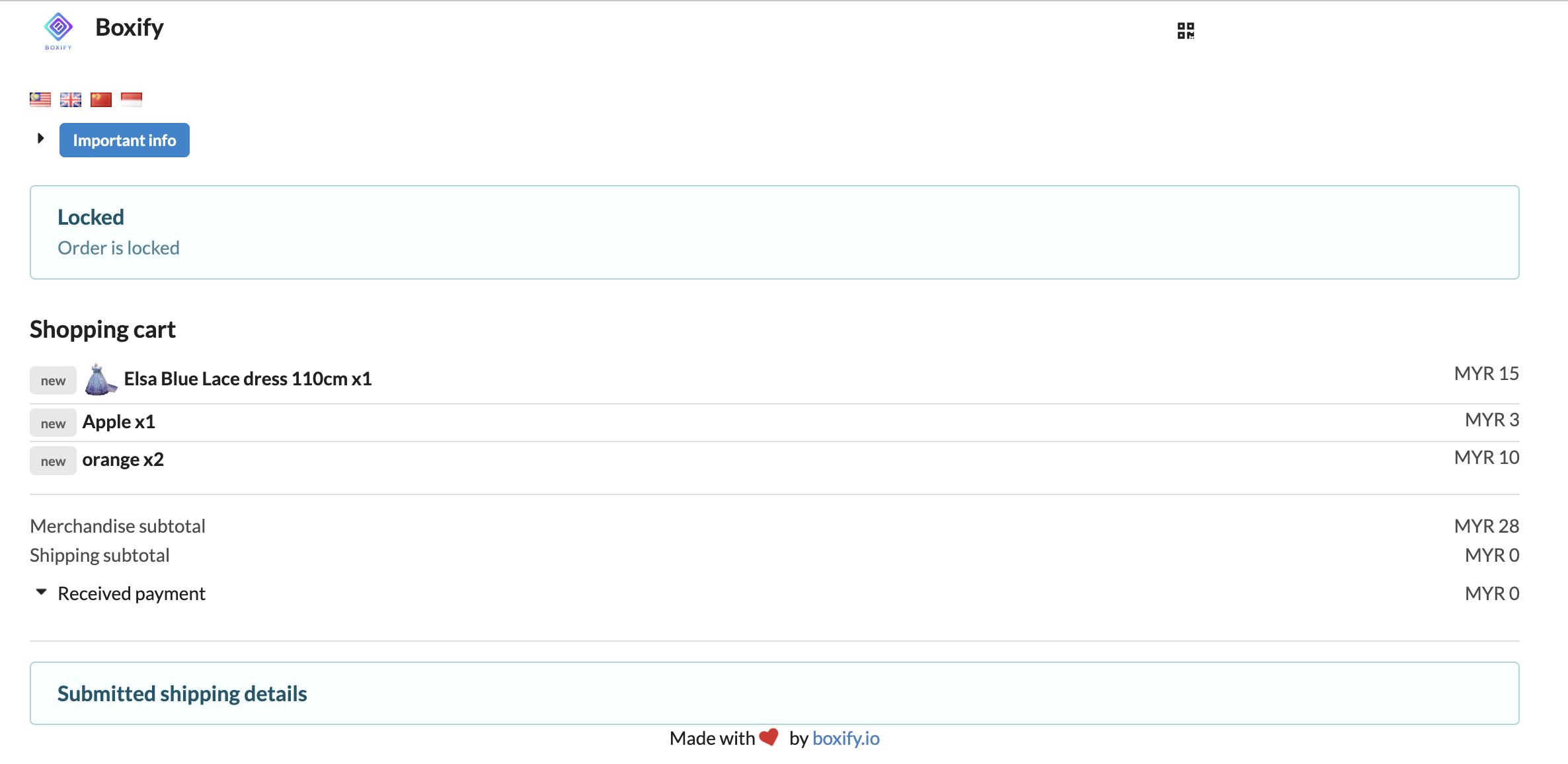 While an order is locked, the customer cannot upload a receipt or submit their shopping cart. The order stays locked until you change it to another status.