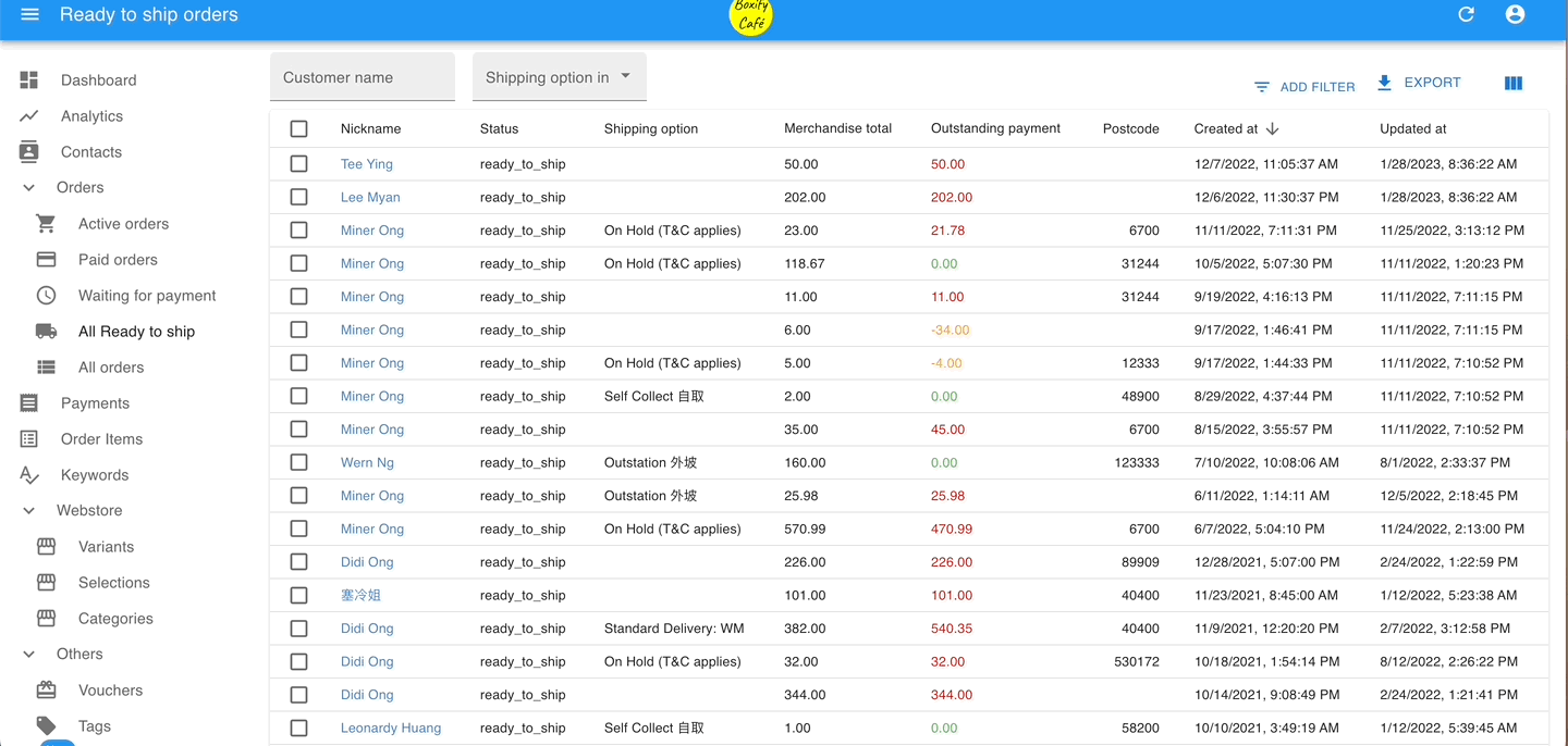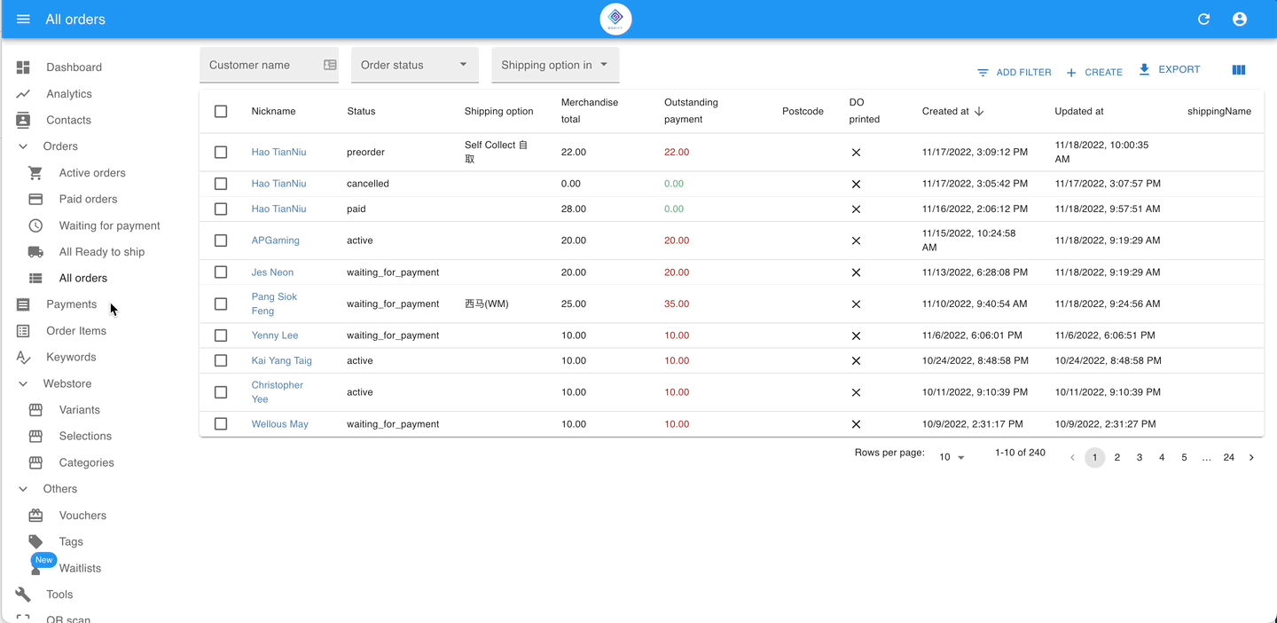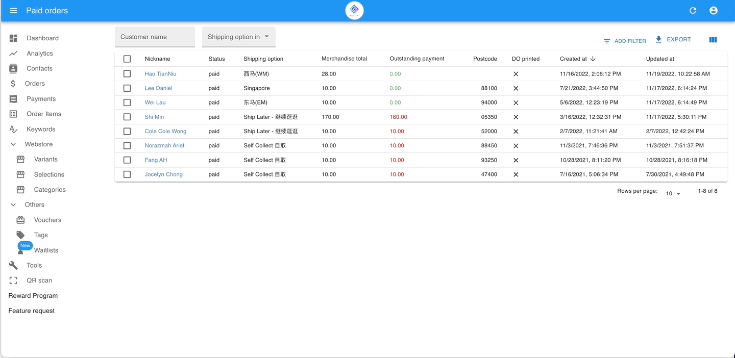 - Go to Paid Orders and select the orders you want to arrange for shipment.