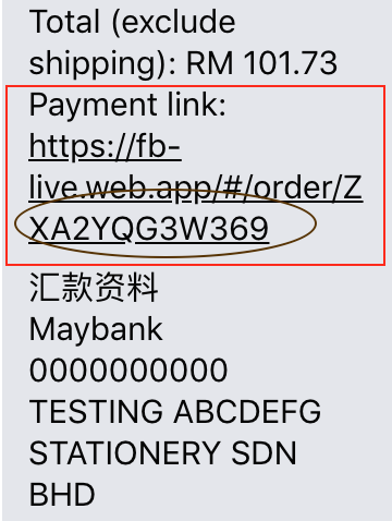 Section titled “Where to find the order number”From the payment link in Messenger — the order number appears in the shopping cart message sent to the customer.