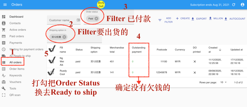 - 完成付款对账后,你会看到客户欠款为”0”,确认这些订单可以安排发货。
